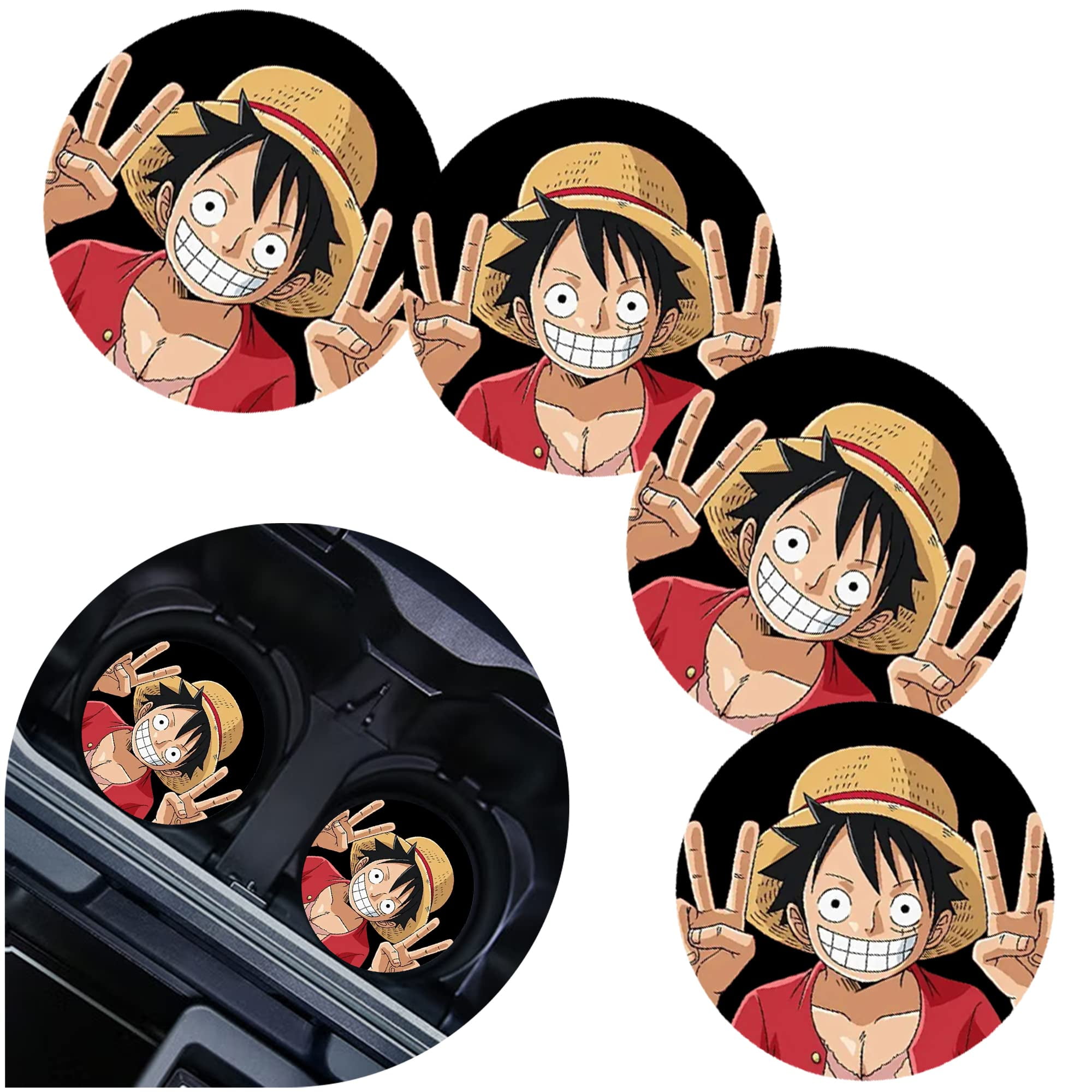 Zoa Car Cupholder Coaster 4pcs Anime One Piece Rubber Automotive Cup Holder Coaster 2 75 Onepiece Design With For Women Men Straw Hat Jolly Roger Walmart Com